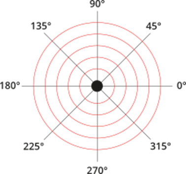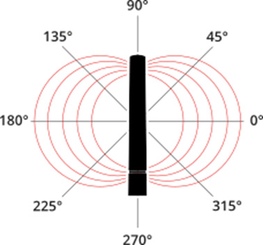 With horizontal radiation, the antenna is viewed from above, as shown in Figure 2. In a rod antenna, the electromagnetic waves propagate in a circle around the center of the antenna.