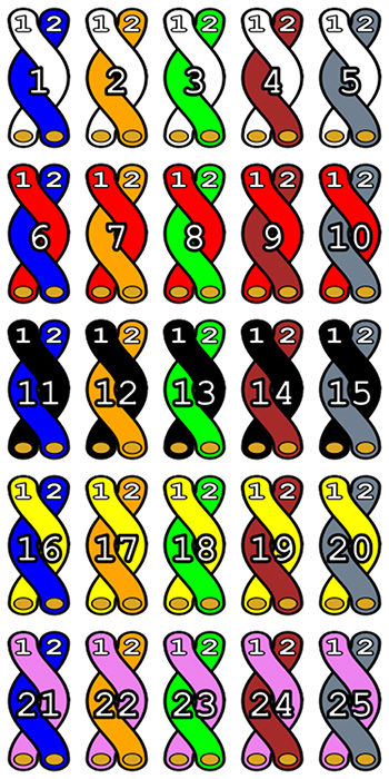 Fig. 1.2: Colour coding of a twisted pair cable (25 wire pairs)