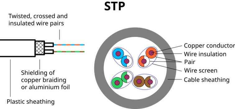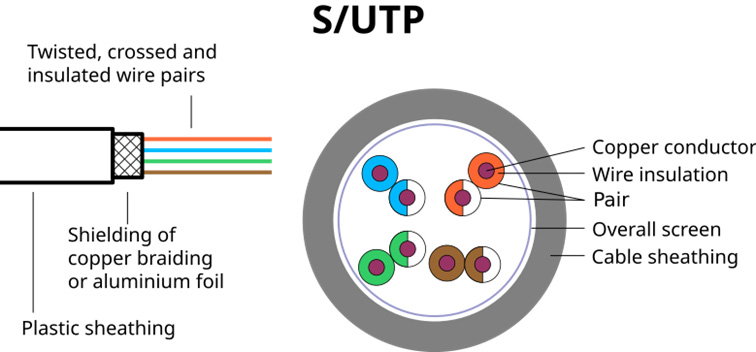 | SFTP, S-FTP, STP | SF/UTP | Braiding and Foil | None |