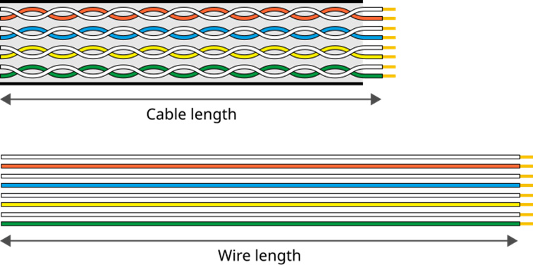 As a guideline, a deviation of 3 % has proven to be a good estimation, i.e. if the electrical length is 103 m, then the cable length is about 100 m. However, this depends on the cable type or more precisely the twisting factor.