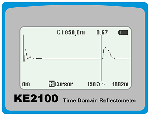 A TDR meter, such as our KE2100, sends an electrical pulse and then calculates the cable lengths or fault location based on the time taken to return to the transmitter.