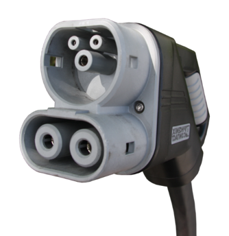 CHAdeMO is a plug system developed in Japan for charging electric cars and plug-in hybrids. CHAdeMO is an acronym for “CHArge de MOve”, equivalent to “charge for motion”, and is a play on words which suggests “O cha demo ikaga desuka”, which means “let’s have a cup of tea while charging” in Japanese.